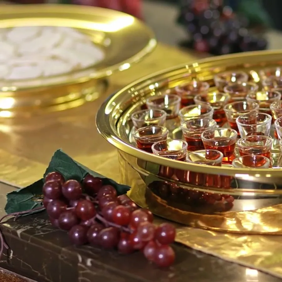 Žiadame prisluhujúcich, aby bezprostredne po prijatí posvätného vína komunikantmi, sami vyzbierali použité kališteky na pripravenú tácku - a to aj v prípade, že sú k dispozícii len jednorazové kališteky z plastu.